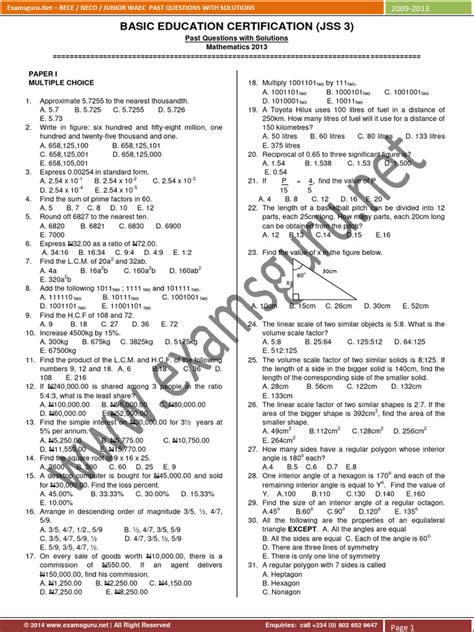 Read Online junior waec question papers on maths Epub